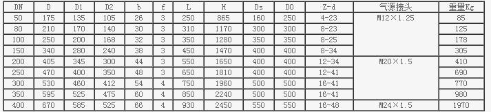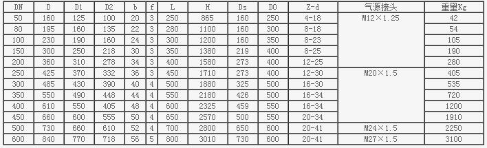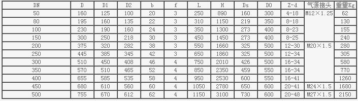 PN1.6MPa Z641H氣動閘閥主要連接尺寸和外形尺寸
