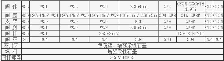 三、J41Y型美標截止閥主要零件的材料說明: