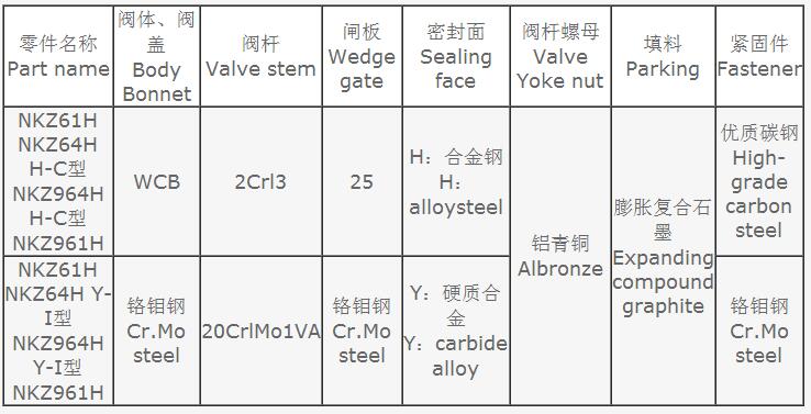 DKZ61H真空閘閥主要零部件材料