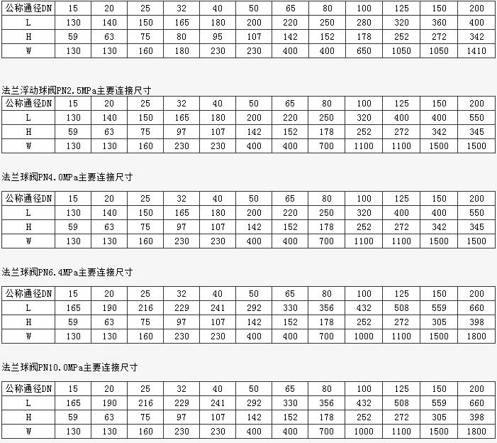 法蘭浮動球閥PN1.6MPa主要連接尺寸