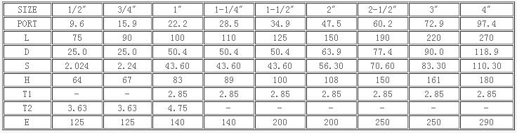 二、Q81F三片式卡箍球閥主要連接尺寸及重量