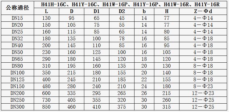 H41W不銹鋼止回閥主要連接尺寸