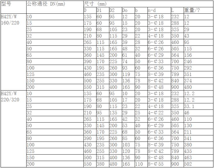 H42Y高壓立式止回閥主要尺寸和重量