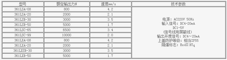 執(zhí)行機(jī)構(gòu)主要技術(shù)參數(shù)