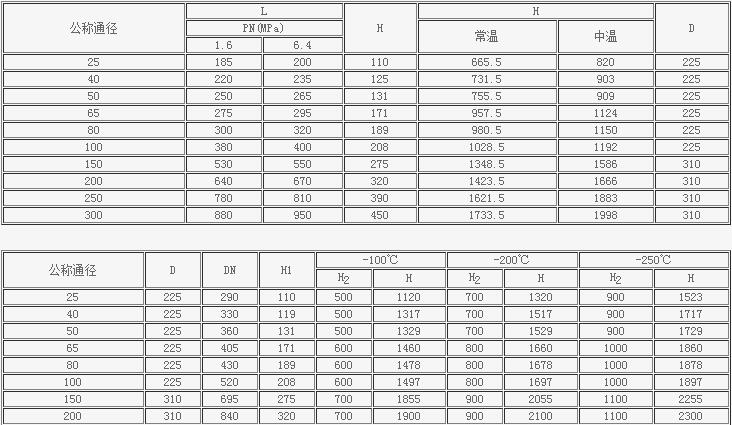 外形尺寸:ZDLP電動(dòng)常、中溫雙座閥外形尺寸表