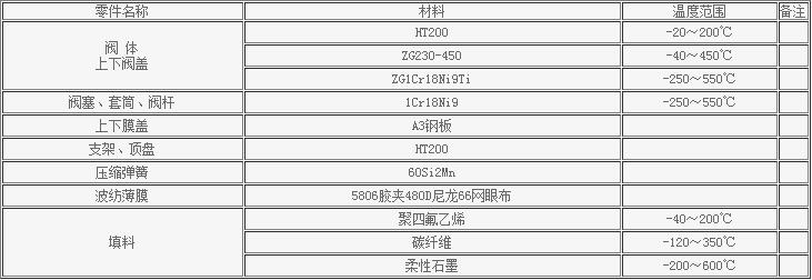 氣動薄膜套筒調節閥主要零件材料及推薦使用溫度范圍