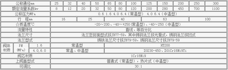 氣動薄膜單座調節閥主要零件材料及推薦使用溫度范圍