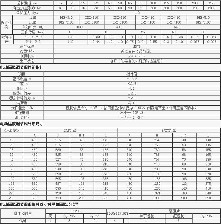 電動隔膜調(diào)節(jié)閥主要技術(shù)參數(shù)