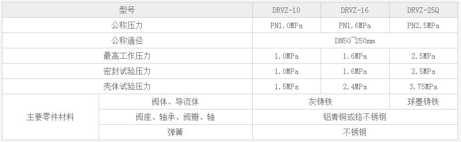 HC42X(DRVZ)型靜音式止回閥 主要技術參數(shù)