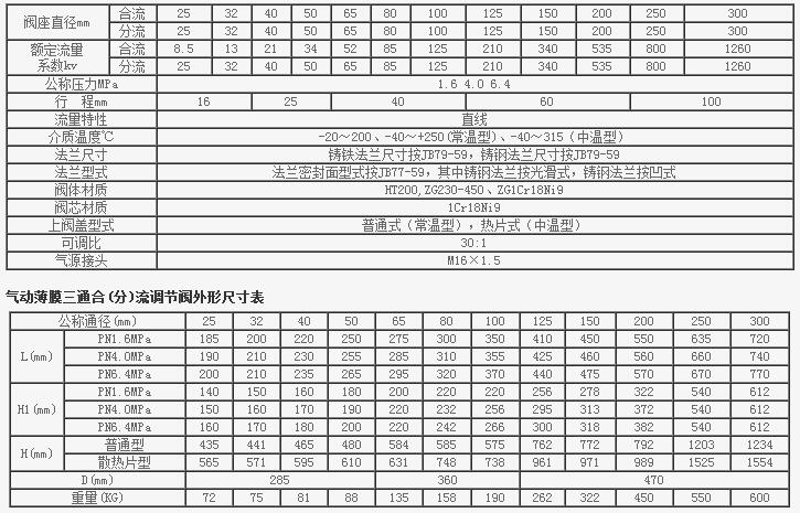 氣動薄膜三通合(分)流調節(jié)閥主要技術參數(shù)